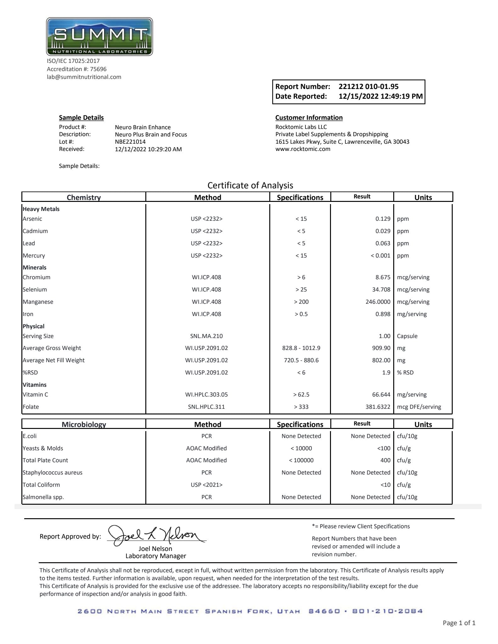 • Nutrients & Extracts: Choline, Inositol, N-Acetyl L-Tyrosine, L-Glutamine, Glutamic Acid, Bilberry, Grape Seed, Olive Leaf, Licorice Root, Boron, DHA, Phosphatidylserine, Huperzine A